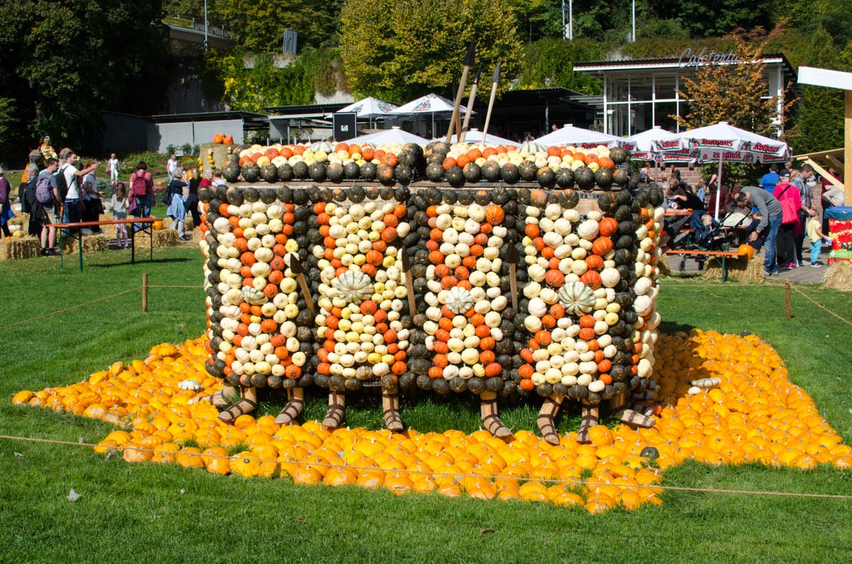 Hier gab es nicht nur allerlei Kürbisse zu sehen, die zum Thema „das alte Rom“ zusammengestellt waren, nein, es gab auch viele leckere Speisen und Getränke rund um den Kürbis. Vom Kürbisburger über Kürbissuppen bis hin zu Kürbiseis. Dazu konnte man eine Kürbisschorle trinken oder sich einen Kürbis-Prosecco gönnen.