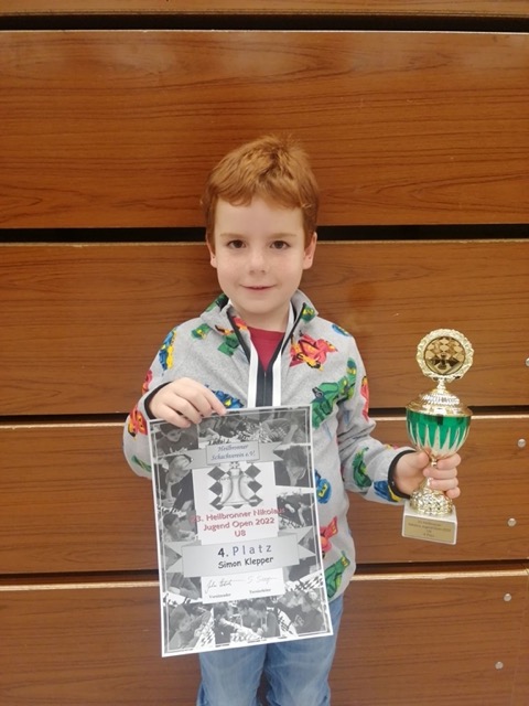 Sein Bruder Simon trat in der U8 an und startete nicht so stark wie sein Bruder (2,5 aus 5 Partien). Er fand dann aber immer besser ins Turnier und holte am Ende sehr gute 5,5 Punkte aus 9 Partien, was zu einem vierten Platz reichte. Als verdienten Lohn konnte er seinen ersten Pokal mit nach Hause nehmen.